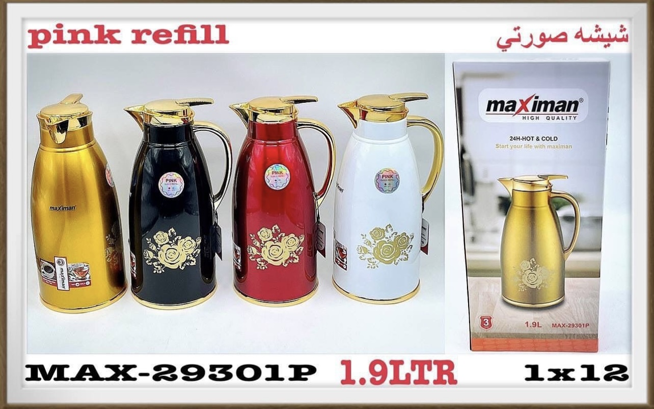 فلاسک دو لیتر شیشه صورتی ماکسیمان مدل MAX-29301Pناموجود